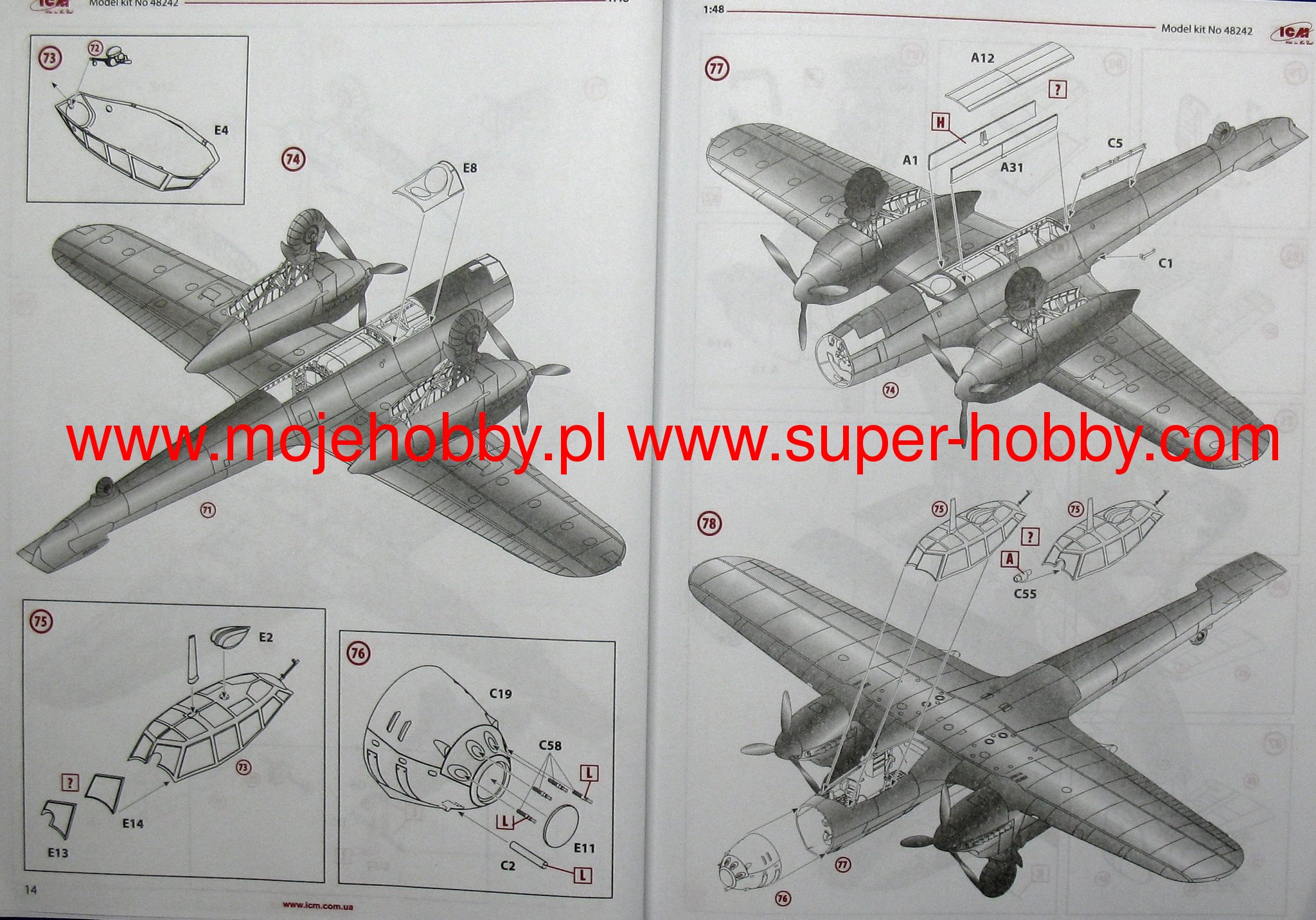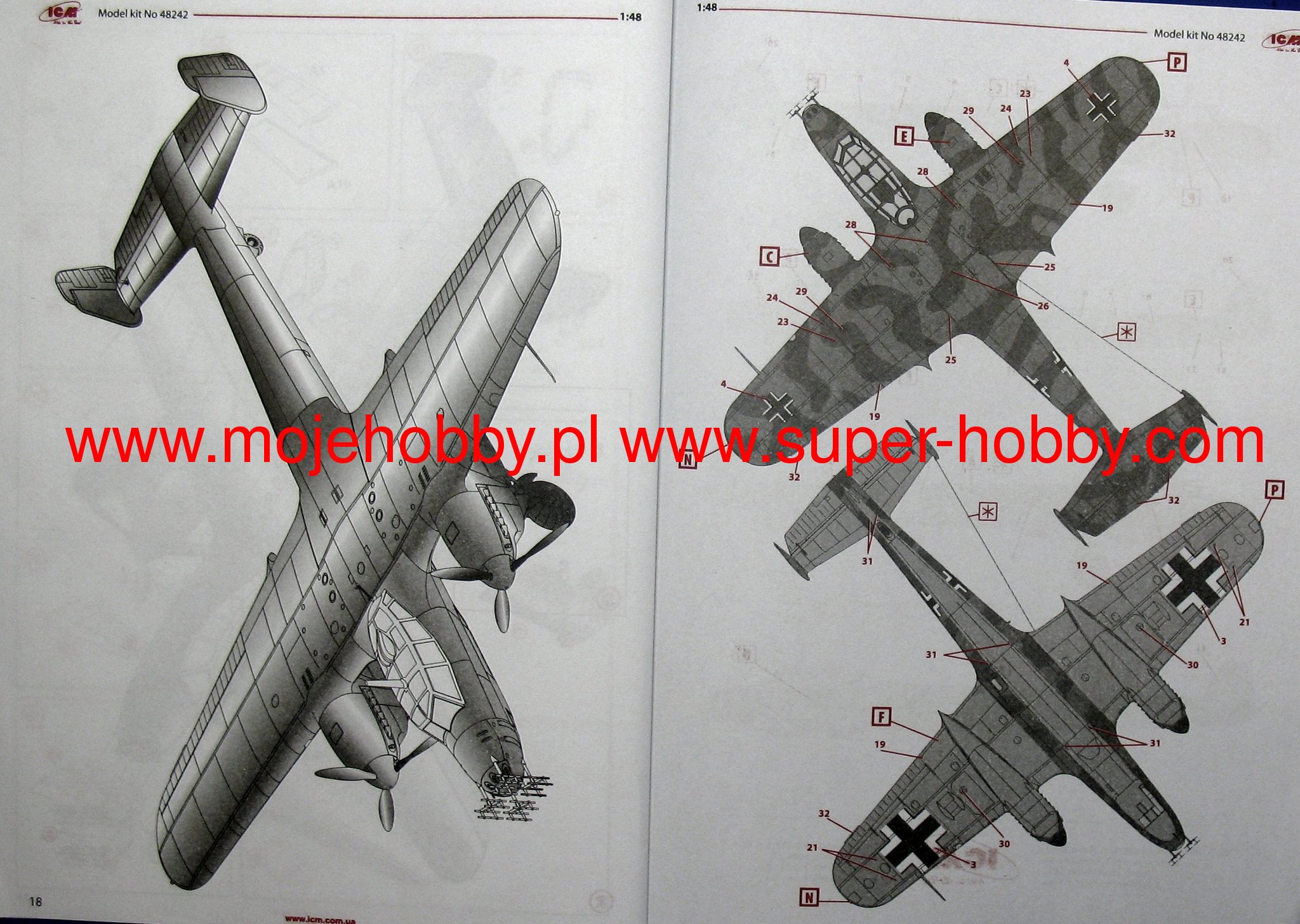 В начале 30-х годов возникла концепция скоростного бомбардировщика, который мог бы обогнать современные ему истребители-бипланы. Одним из таких бомбардировщиков стал германский самолет Дорнье Do 17. Первый полет Do 17V-1, который был заявлен как пассажирский самолет, состоялся в ноябре 1934 г. Модификация Do 17Z с новой носовой частью “Waffenkopf” и звездообразными двигателями появилась в конце 1938 г. С начала 1940 г. началось производство небольшой серии самолетов Do 215, которые отличались установкой двигателей жидкостного охлаждения DB 601A. В 1941 г. начался выпуск ночных истребителей Do 215B-5. На этих самолетах с мощным вооружением были установлены радары FuG 202 Lichtenstein. Do 215B-5 служили в ночной истребительной группе II/NJG 1 до начала 1944 г. Масштаб: 1/48 Размер: 35 х 37,5 см Количество деталей: 190 шт. Сложность: Средне Клей и краски в комплект не входят