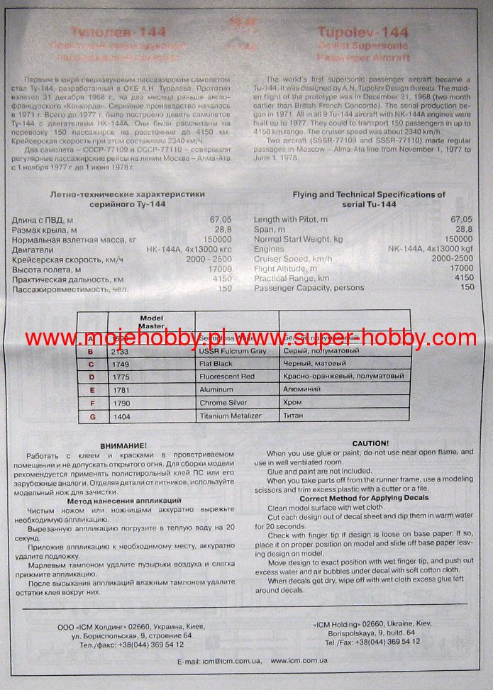 TUPOLEV-144 SOVIET SUPERSONIC PASSENGER AIRCRAFT (ТУ-144 СОВЕТСКИЙ СВЕРХЗУКОВОЙ ПАССАЖИРСКИЙ САМОЛЕТ) (1/144) продается в 1 магазинах. Выберите подходящий Вам интернет-магазин и перейдите по ссылке «В магазин».