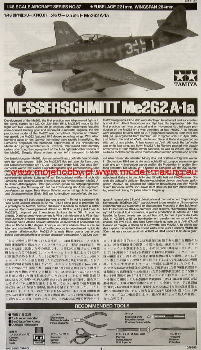 НЕМЕЦКИЙ ИСТРЕБИТЕЛЬ MESSERSCHMITT ME262 A-1A (1:48) (1/48) продается в 4 магазинах. Выберите подходящий Вам интернет-магазин и перейдите по ссылке «В магазин».