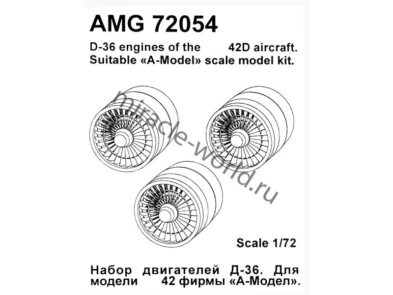 AMIGO AMG 72054 ДВИГАТЕЛИ Д-36 (3ШТ.) ДЛЯ САМОЛЕТ (Я) ТИП 42Д 1/72 продается в 1 магазинах. Выберите подходящий Вам интернет-магазин и перейдите по ссылке «В магазин».