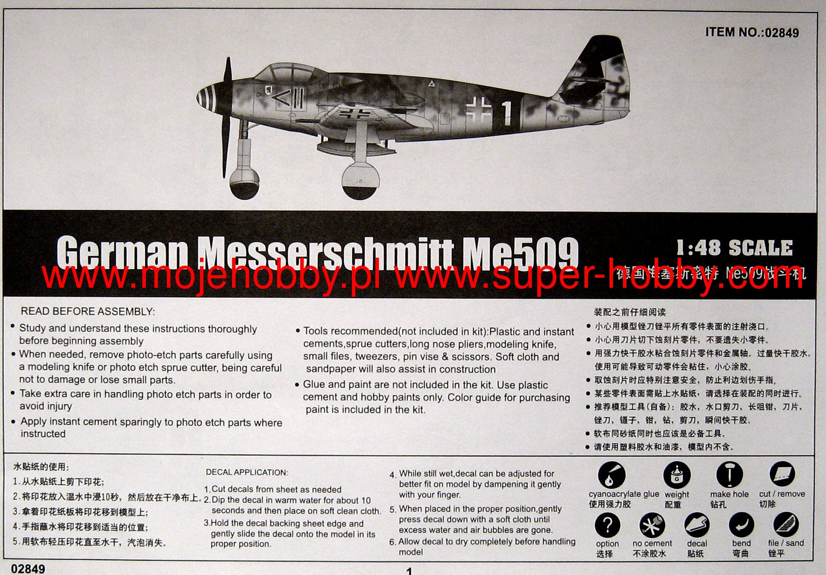 Купить 02849 АВИАЦИЯ GERMAN MESSERSCHMITT ME 509 (1/48)