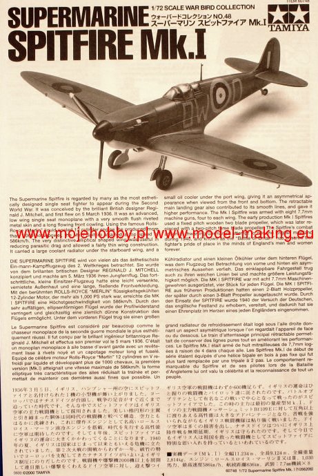 БРИТАНСКИЙ ИСТРЕБИТЕЛЬ SUPERMARINE SPITFIRE MK.I (1:72) tamiya 1/72