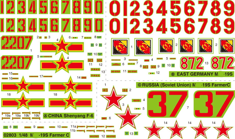 Описание M&G-19 (по кодификации НАТО: Farmer Фермер) советский одноместный реактивный истребитель второго поколения. Первый советский серийный сверхзвуковой истребитель, широко применялся в системе ПВО СССР и поставлялся за рубеж. M&G-19 стал первым в мире самолётом, способным при старте с земли достигать сверхзвуковой скорости в горизонтальном полёте. M&G-19 является ровесником американского истребителя F-100 Super Sabre, хотя во Вьетнаме противостоял и более поздним F-4 Phantom II. M&G-19С - Истребитель с цельноповоротным стабилизатором (отсюда и литера С), тремя 30-мм пушками НР-30, обновлённым составом БРЭО и улучшениями в конструкции планера. Построено 2120 истребителей.