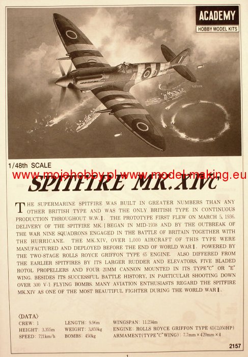 Купить SPITFIRE MK.XIVC (СУПЕРМАРИН СПИТФАЙР MK.XIVC БРИТАНСКИЙ ИСТРЕБИТЕЛЬ-БОМБАРДИРОВЩИК 2МВ) (1/48)
