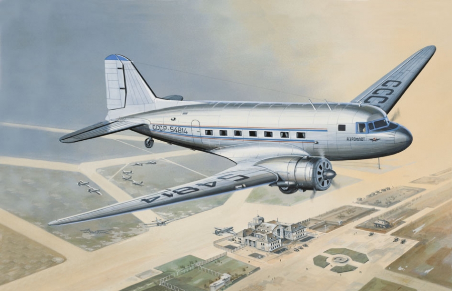 Дополнительная информация ПС-84 ( Ли-2 с 1942 г) - двухмоторный пассажирский самолет - лицензионная версия американского самолета Дуглас DC-3 .Серийное производство с середины 1938 г. на заводе №84 им В.П. Чкалова в Химках, в версии гражданской ПС-84. В апреле 1941 года на заводе в Химках собрали 100-й самолет,. К началу войны "Аэрофлот" располагал 72 ПС-84, 49 - в ВВС, 5 на флоте. С июля 1941 года на самолеты стали ставить оборонительное вооружение. Первоначально экипаж пассажирского ПС-84 состоял из 5-ти человек, два пилота, бортмеханик, бортрадист и стюардесса. Количество перевозимых пассажиров - от 14 до 21. Самолет хорошо зарекомендовал себя как пассажирский и транспортный, отличаясь надежностью, экономичностью, а также простотой в эксплуатации. В годы Великой Отечественной войне широко использовался не только для самых разнообразных перевозок на фронте и в тылу, но и как ночной бомбардировщик. За годы войны советские ВВС получили около 2000 самолетов Ли-2.