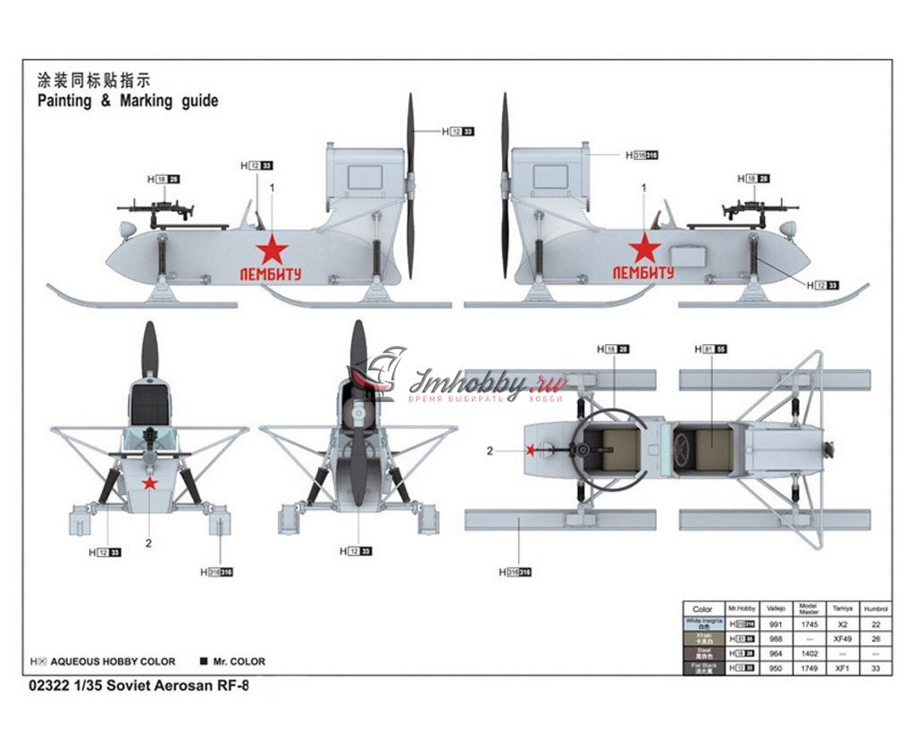 Сборная модель Советские аэросани РФ-8 (Soviet Aerosan RF-8) в масштабе 1:35 от Трубача. Характеристики модели: Длина - 146 ммШирина - 72 ммКол-во деталей - 80+ штМасштаб - 1:35Декали в комплекте.Фигурка в комплекте.Фототравление в комплекте. Внимание! Краски и клей в комплект не входят.
