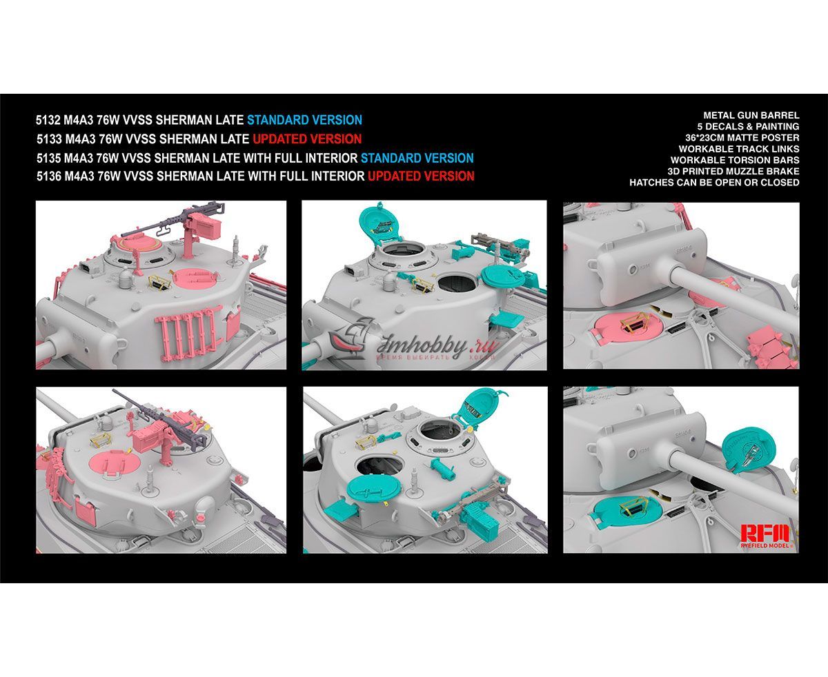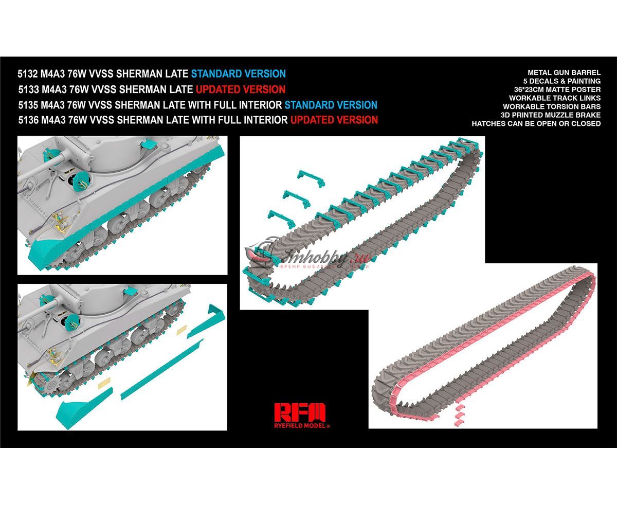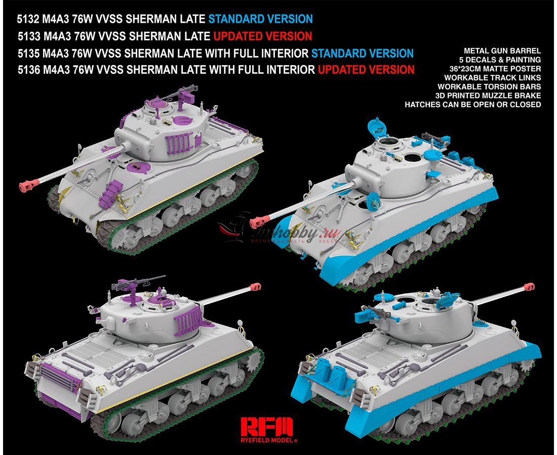 M4A3 SHERMAN 76W VVSS LATE W/INTERIOR UPGRADE VERSION RYE FIELD MODELS