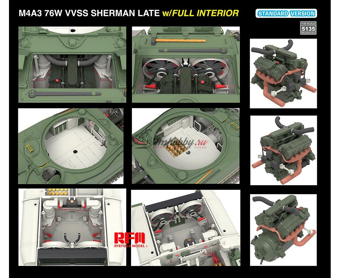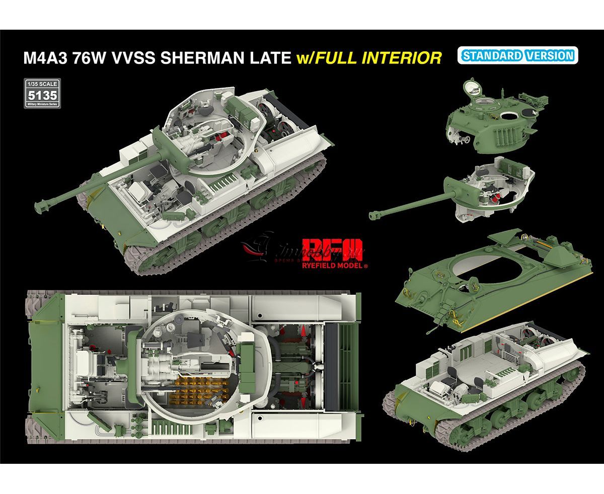 M4A3 SHERMAN 76W VVSS LATE W/INTERIOR STANDARD VERSION RYE FIELD MODELS noname 1/35