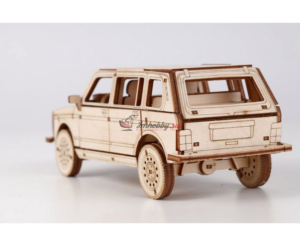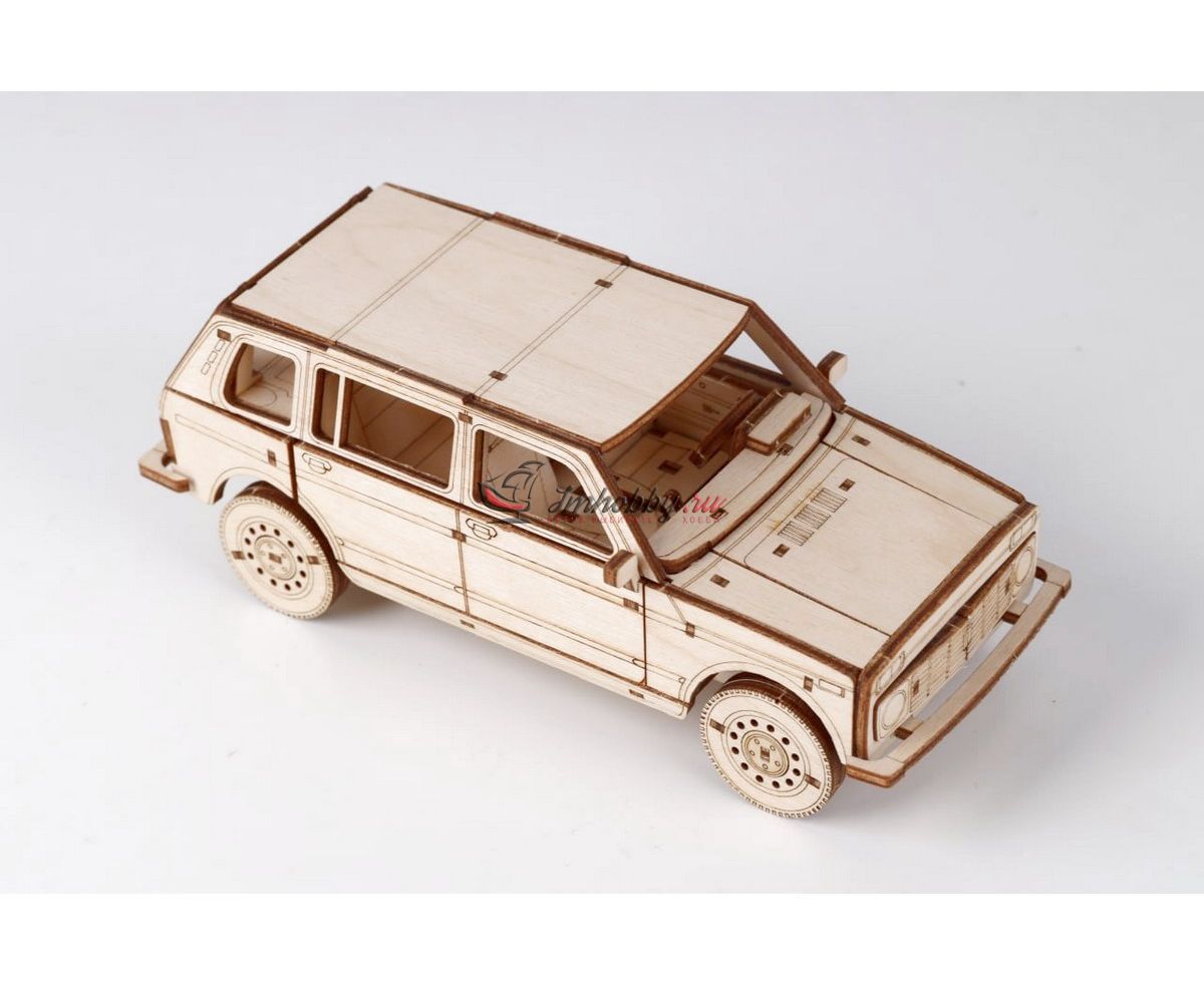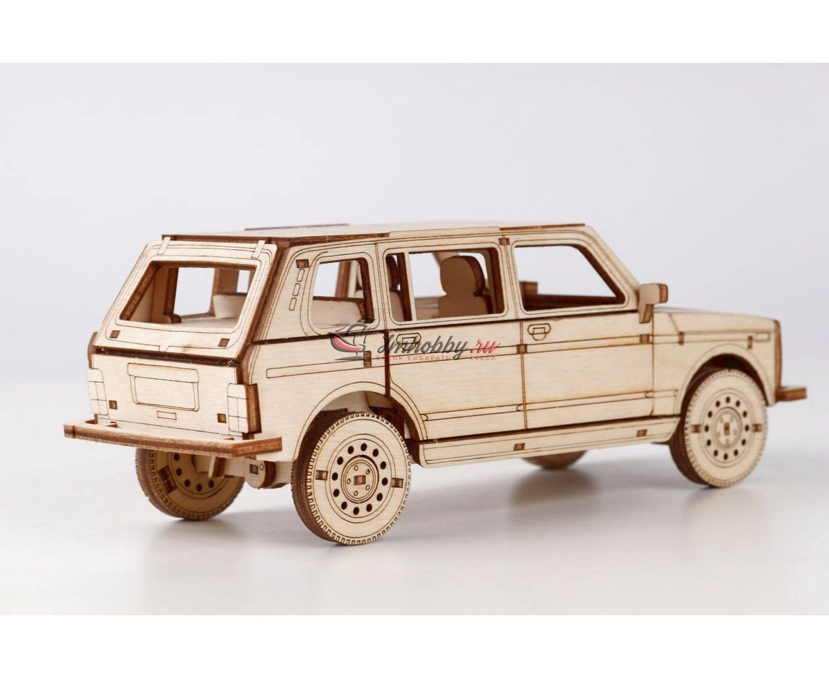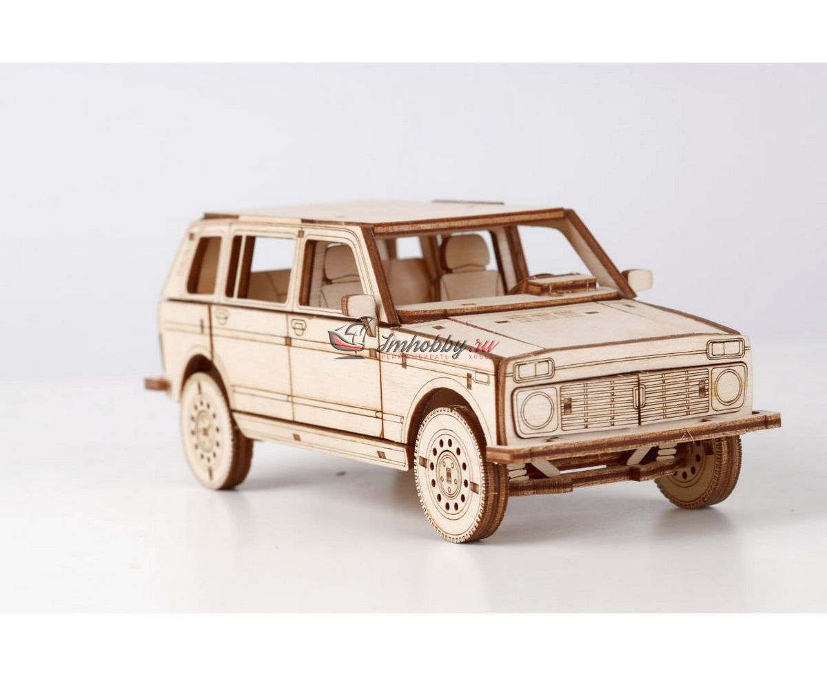 Сборная масштабная модель легкового автомобиля 2131 4x4 из фанеры. Детали изготовлены методом лазерной резки. Для сборки понадобятся столярный клей ПВА, модельный нож, надфиль (или наждачная бумага/губка). При желании модель можно окрасить или покрыть морилкой/лаком. Спецификации:Масштаб: 1:24Размеры: 177х80х68 ммКоличество деталей: 111Материал: ФанераПроизводитель: Baumi (Россия)