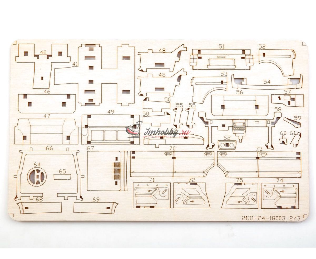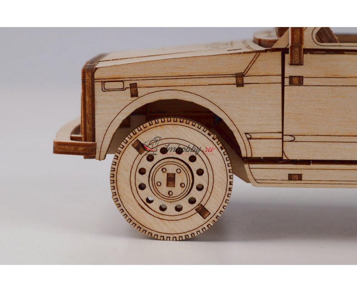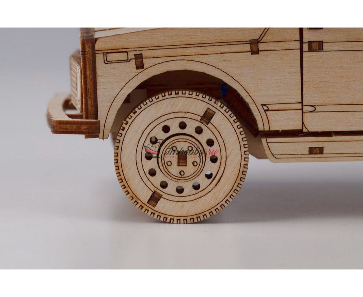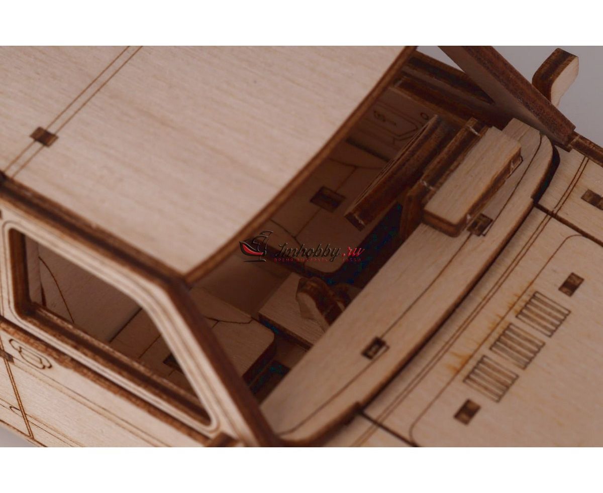Сборная масштабная модель легкового автомобиля 2131 4x4 из фанеры. Детали изготовлены методом лазерной резки. Для сборки понадобятся столярный клей ПВА, модельный нож, надфиль (или наждачная бумага/губка). При желании модель можно окрасить или покрыть морилкой/лаком. Спецификации:Масштаб: 1:24Размеры: 177х80х68 ммКоличество деталей: 111Материал: ФанераПроизводитель: Baumi (Россия)