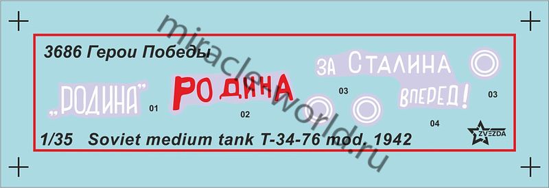 ЗВЕЗДА 3686ГП Т-34/76 ОБРАЗЦА 1942Г. С БАШНЕЙ "ГАЙКА" /СРЕДНИЙ ТАНК/ 1/35