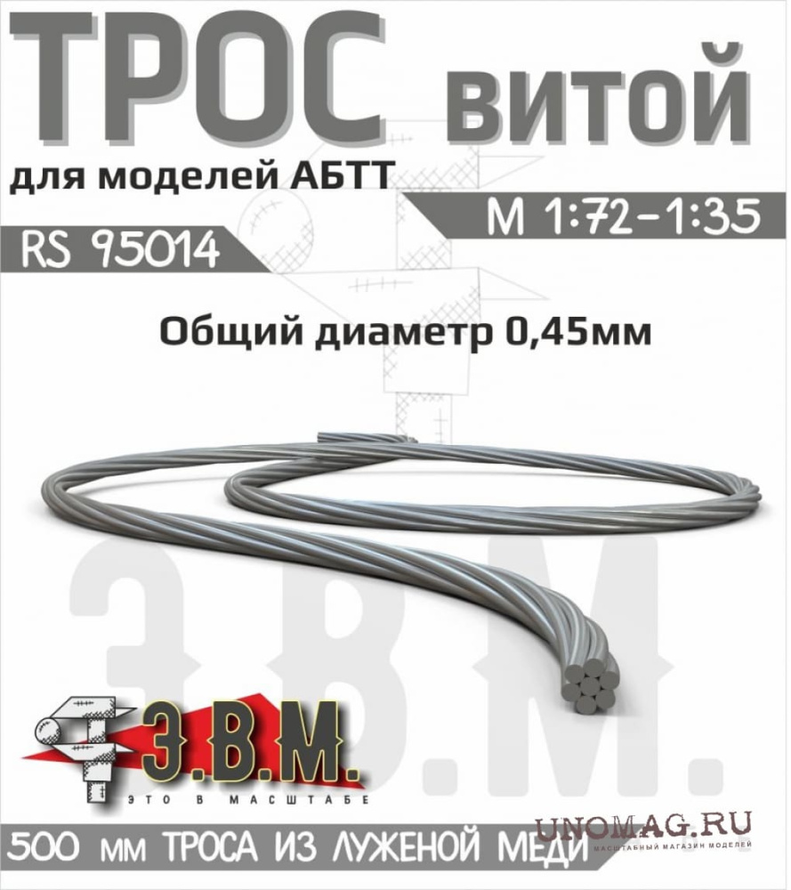 Э.В.М. RS95014 ТРОС ВИТОЙ D=45, L=500ММ продается в 1 магазинах. Выберите подходящий Вам интернет-магазин и перейдите по ссылке «В магазин».