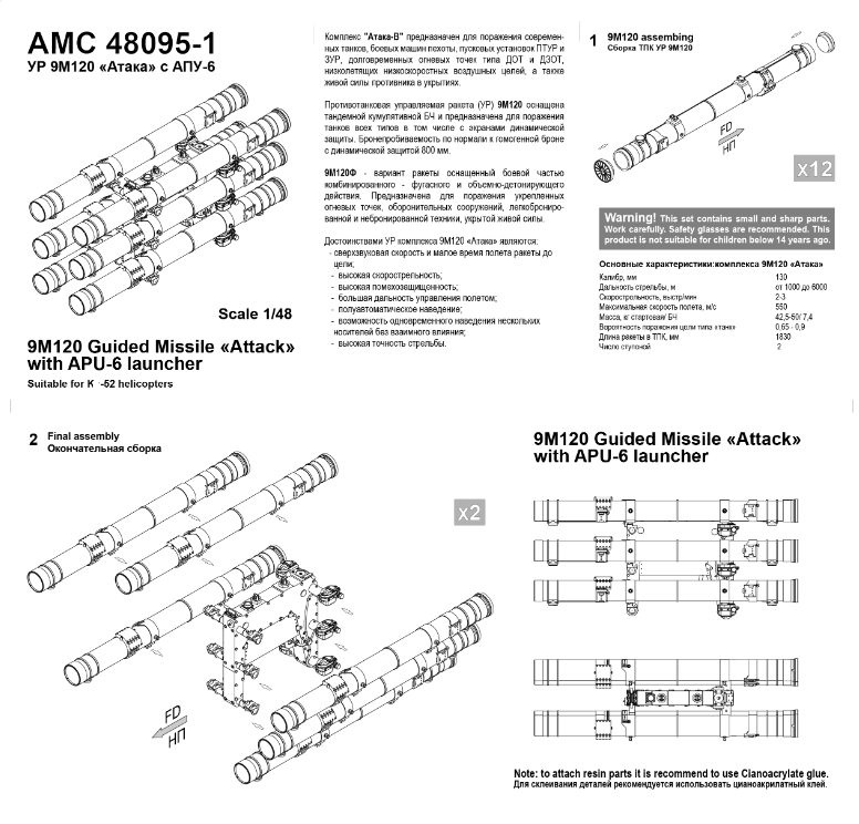 Купить AMC 48095-1 ДОПОЛНЕНИЯ ИЗ СМОЛЫ ПТУР 9М120 "АТАКА" 4ШТ. С АПУ-6 (1/48)