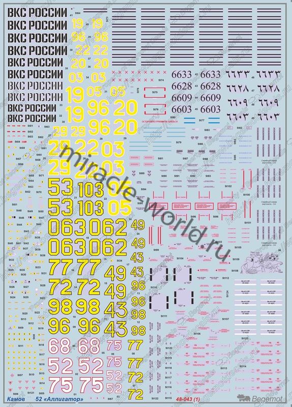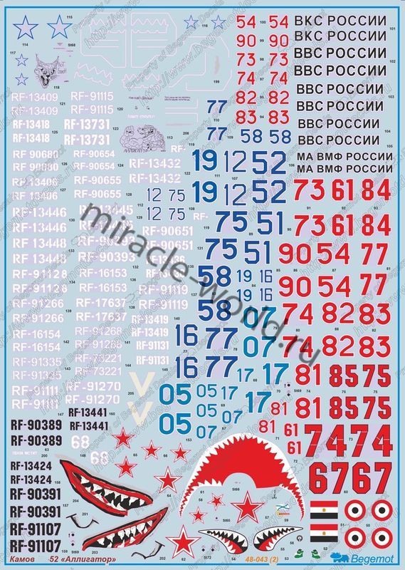 BEGEMOT 48-043 ДЕКАЛЬ: ВЕРТОЛЕТ (К) ТИП 52 /54 ВАРИАНТА МАРКИРОВОК/ 1/48