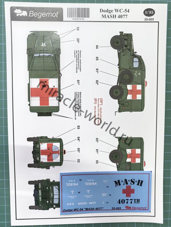 BEGEMOT 35-005 ДЕКАЛЬ: DODGE WC-54 "MASH-4077" 1/35