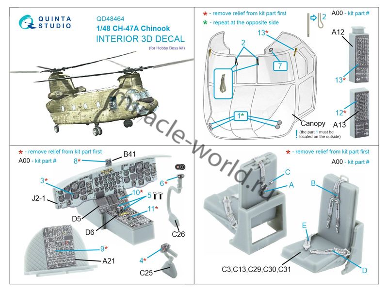 Купить QUINTA QD48464 3D ДЕКАЛЬ ИНТЕРЬЕРА КАБИНЫ CH-47A "CHINOOK" (ДЛЯ МОДЕЛИ HOBBYBOSS) 1/48 (1/48)