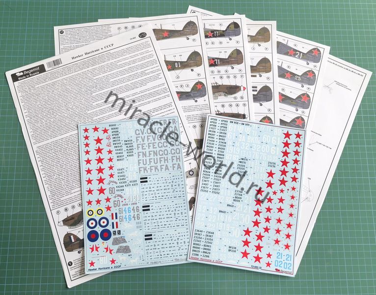 BEGEMOT 72-082 ДЕКАЛЬ: HAWKER HURRICANE В СССР /71 ВАРИАНТОВ МАРКИРОВКИ/ 1/72