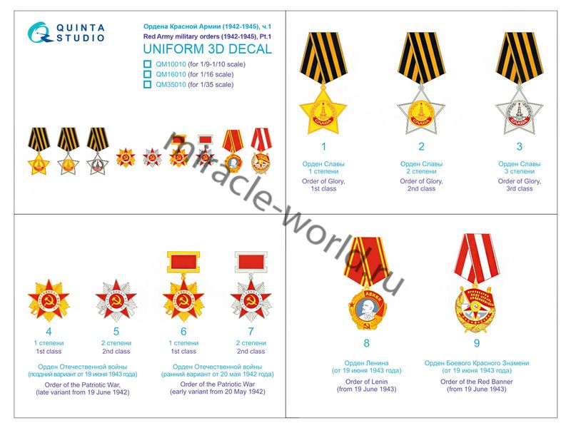QUINTA QM35010 3D ДЕКАЛЬ ОРДЕНА КРАСНОЙ АРМИИ (1942-1945) Ч.1 1/35 (1/35) продается в 3 магазинах. Выберите подходящий Вам интернет-магазин и перейдите по ссылке «В магазин».