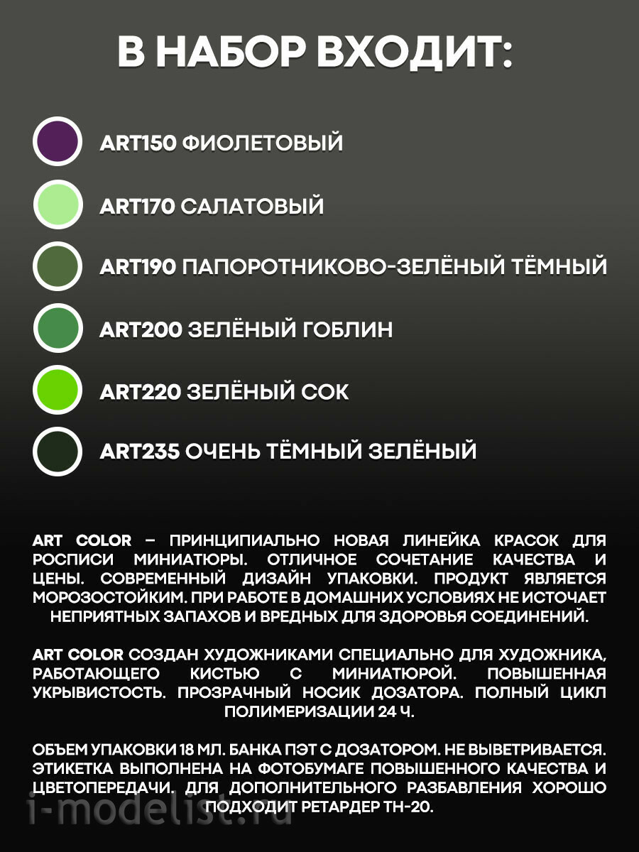 НАБОР АКРИЛОВЫХ КРАСОК ДЛЯ РОСПИСИ МИНИАТЮР ЗЕЛЕНАЯ КОЖА (GREEN SKIN) (6 ШТ.) продается в 1 магазинах. Выберите подходящий Вам интернет-магазин и перейдите по ссылке «В магазин».