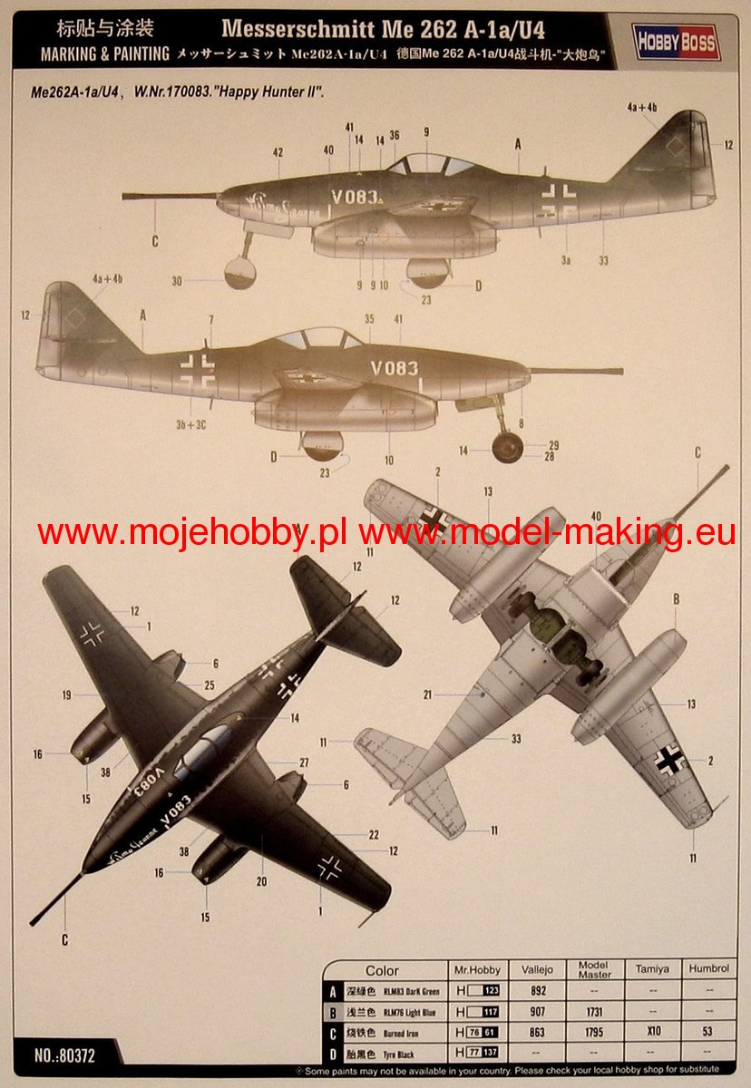 MESSERSCHMITT ME 262 A-1A/U4 hobbyboss 1/48