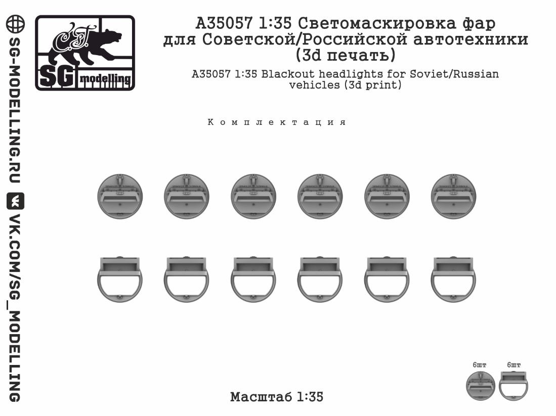 A35057 ДОПОЛНЕНИЯ ИЗ СМОЛЫ СВЕТОМАСКИРОВКА ФАР СОВЕТСКОЙ/РОССИЙСКОЙ АВТОТЕХНИКИ 3D ПЕЧАТЬ (1/35) продается в 1 магазинах. Выберите подходящий Вам интернет-магазин и перейдите по ссылке «В магазин».