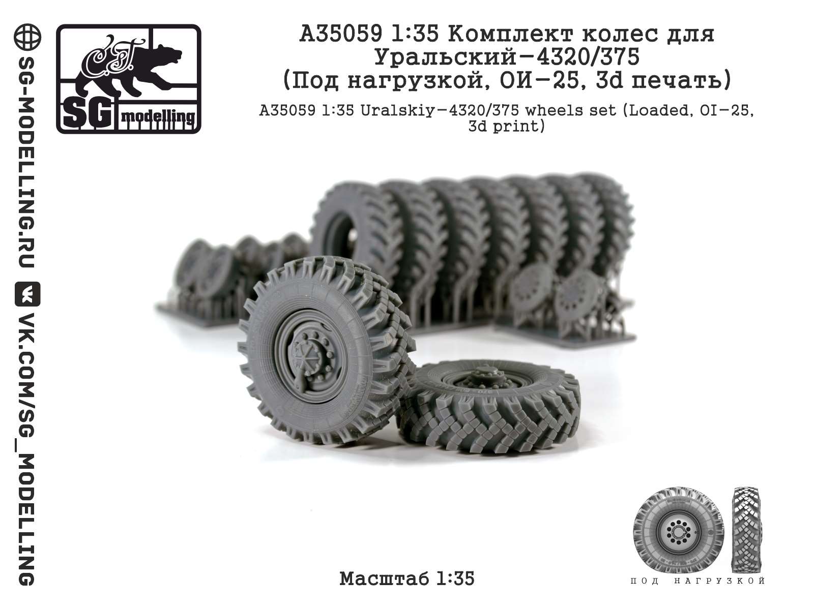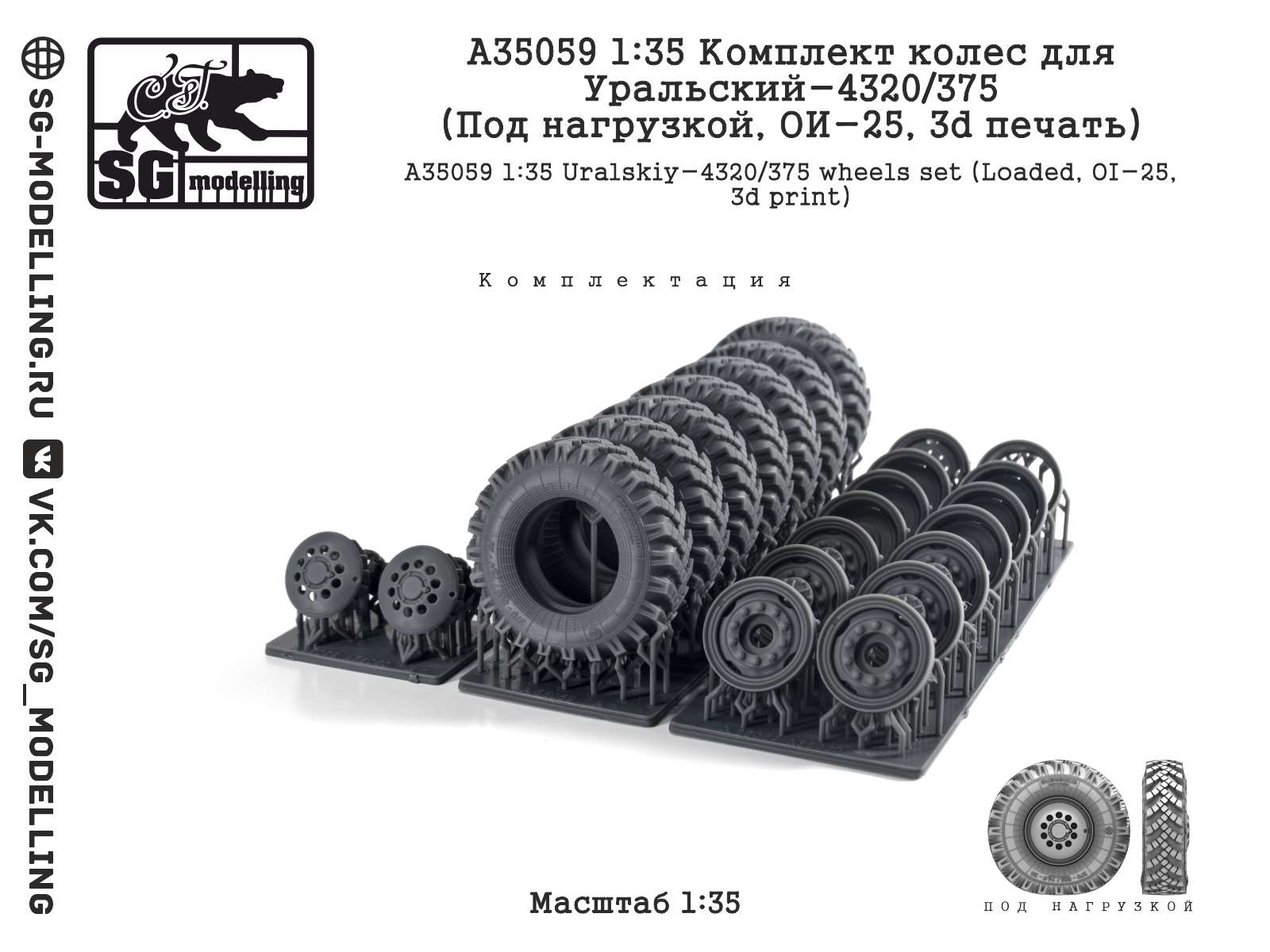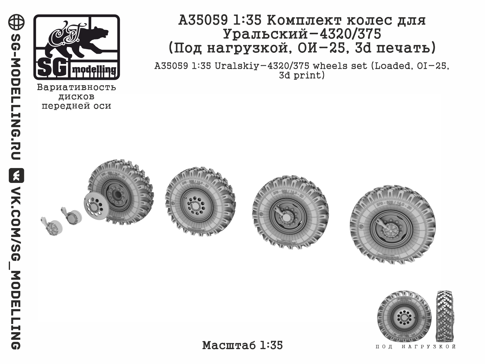 Описание Комплект колес для Уральский-4320/375 (Под нагрузкой, ОИ-25, 3d печать) (1:35)