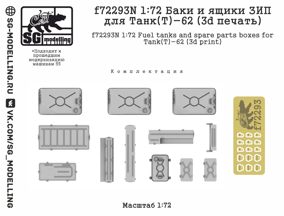 Купить F72293N ДОПОЛНЕНИЯ ИЗ СМОЛЫ БАКИ И ЯЩИКИ ЗИП ДЛЯ ТАНКОВ ТАНК-62 (1/72)