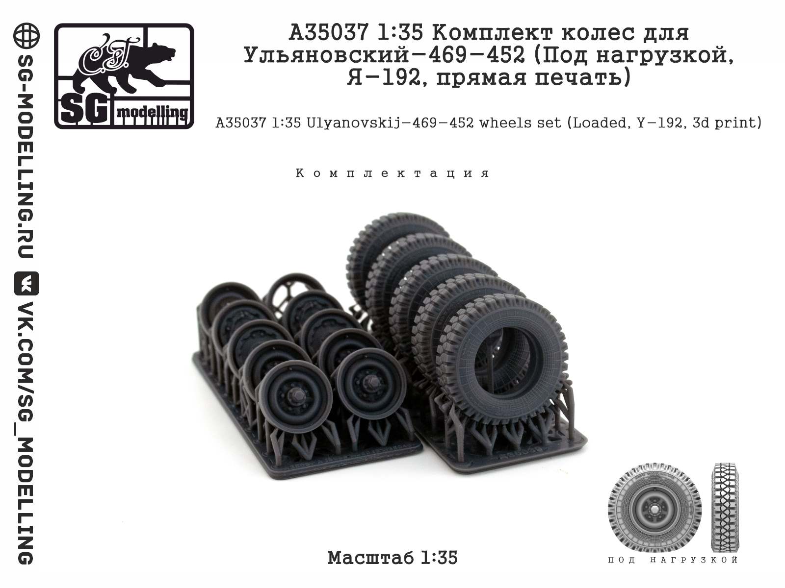 Описание Комплект колес для Ульяновский У@З-469-452 (Под нагрузкой, Я-192, прямая печать) (1:35)