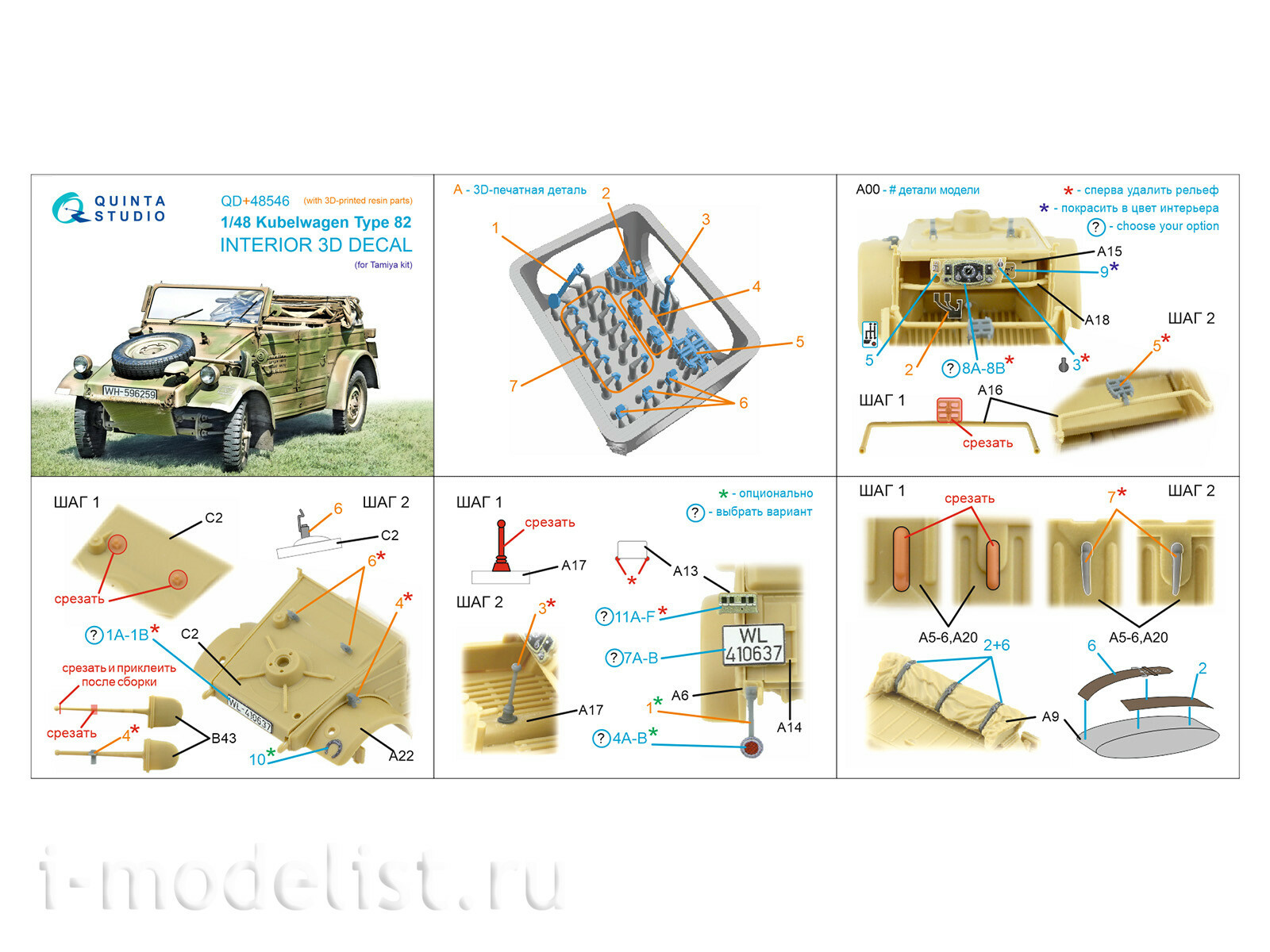 Купить QD+48546 QUINTA STUDIO 1/48 3D ДЕКАЛЬ ИНТЕРЬЕРА КАБИНЫ KUBELWAGEN TYPE 82 (TAMIYA) (С 3D-ПЕЧАТНЫМИ ДЕТАЛЯМИ) (1/48)