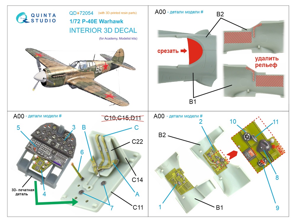 Купить QD+72054 ДЕКАЛИ 3D ИНТЕРЬЕР КАБИНЫ P-40E WARHAWK ACADEMY/МОДЕЛИСТ С 3D ДЕТАЛЯМИ (1/72)