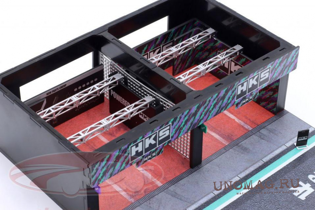 Купить MOTORSPORT PIT GARAGE "HKS", BLACK / GREEN / PURPLE (1/64)