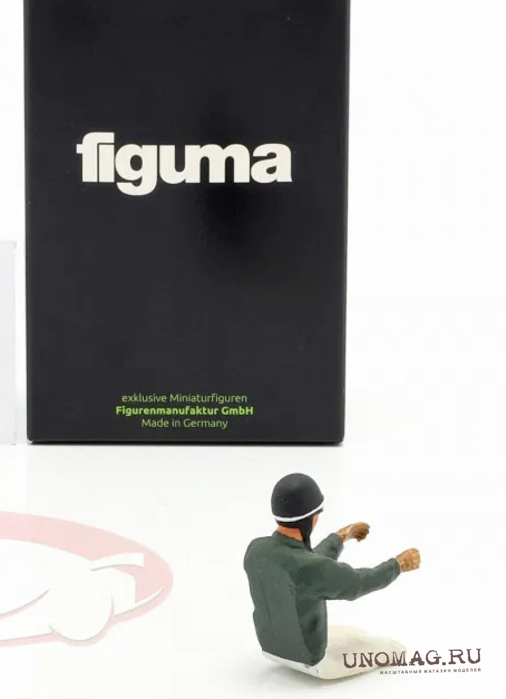 Купить ФИГУРКА СИДЯЩЕГО ГОНЩИКА В СЕРО ЗЕЛЕНОЙ КУРТКЕ (1/18)