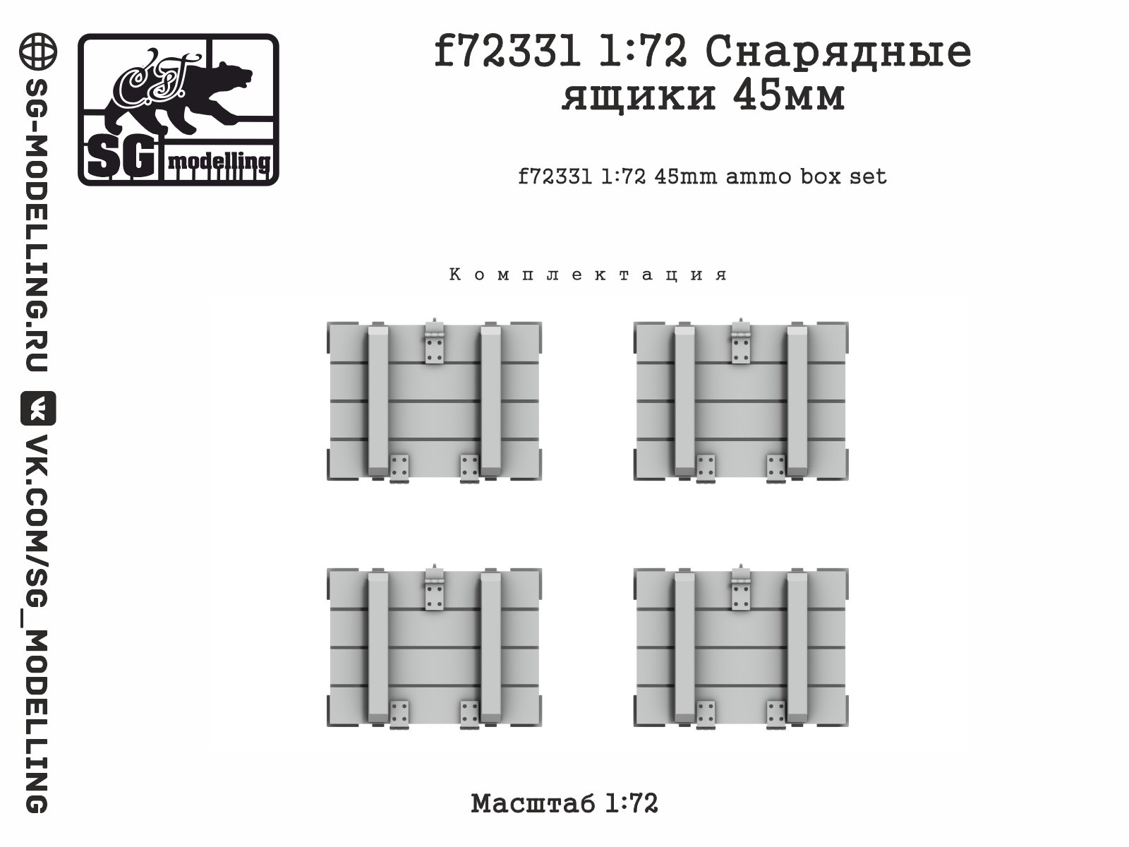 Купить F72331 ДОПОЛНЕНИЯ ИЗ СМОЛЫ СНАРЯДНЫЕ ЯЩИКИ 45ММ 3D ПЕЧАТЬ (1/72)