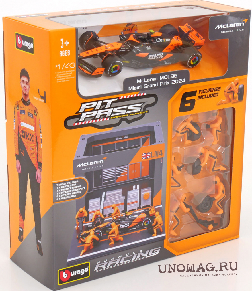 MCLAREN MCL38 DIORAMA GARAGE PIT-STOP TEAM MCLAREN №4 SEASON (2024) LANDO NORRIS WITH CREW FIGURE AND ACCESSORIES - ORANGE BLACK (2024) (1/43) продается в 1 магазинах. Выберите подходящий Вам интернет-магазин и перейдите по ссылке «В магазин».