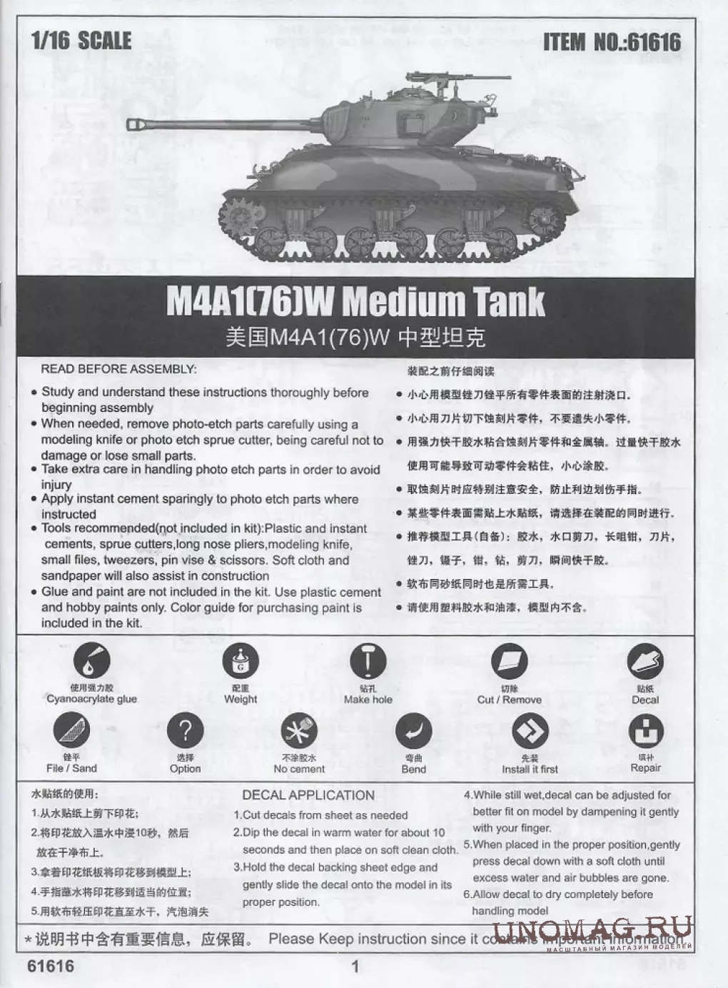 Купить СРЕДНИЙ ТАНК M4A1(76)W (1/16)