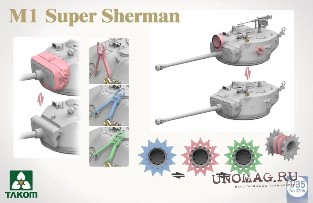 SHERMAN² BOX M4A1(76W)HVSS + M1 SUPER SHERMAN + US ARMY TANK CREWMAN takom 1/35