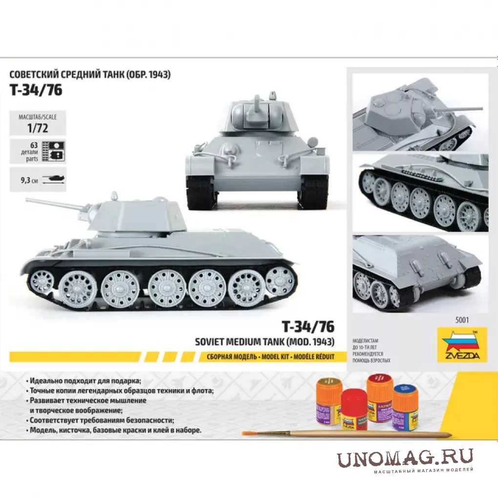 СОВЕТСКИЙ СРЕДНИЙ ТАНК Т-34/76 ОБР. 1943 (ПОДАРОЧНЫЙ НАБОР) звезда 1/72