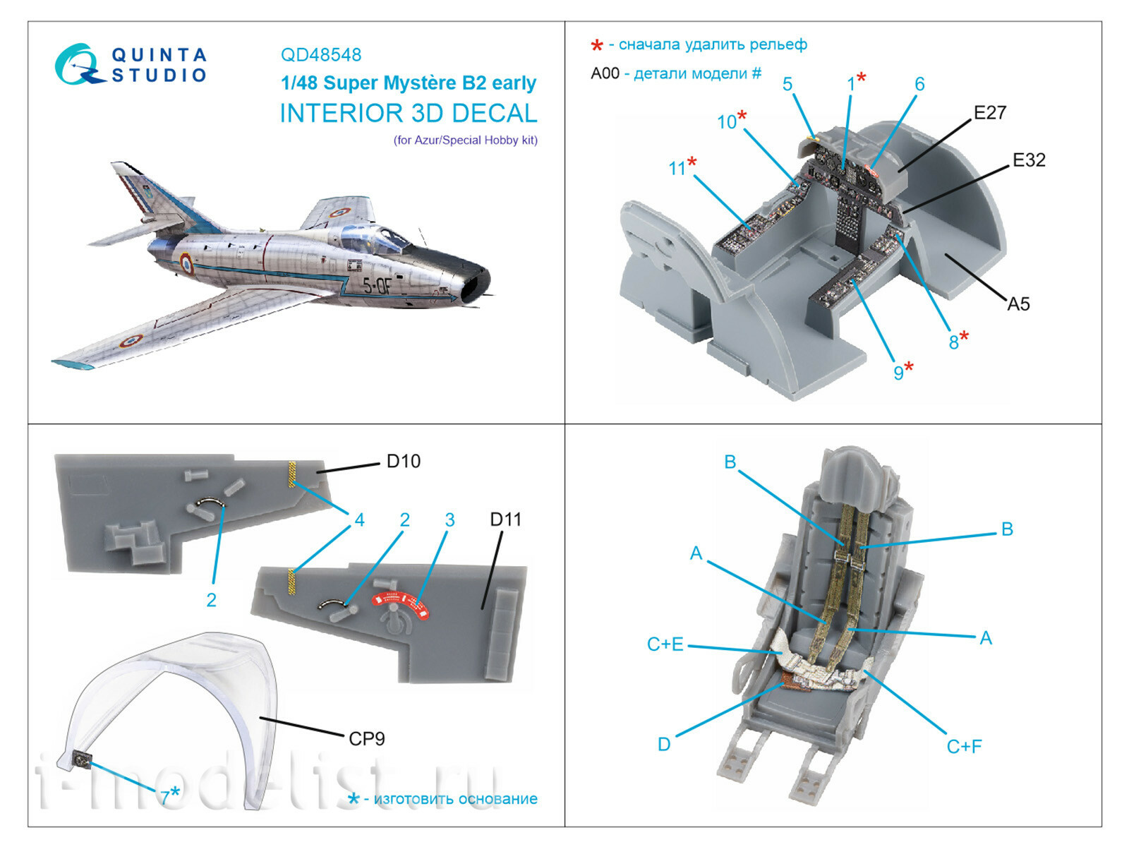 Купить QD48548 QUINTA STUDIO 1/48 3D ДЕКАЛЬ ИНТЕРЬЕРА КАБИНЫ SUPER MYSTERE B2 EARLY (AZUR/SPECIAL HOBBY) (1/48)