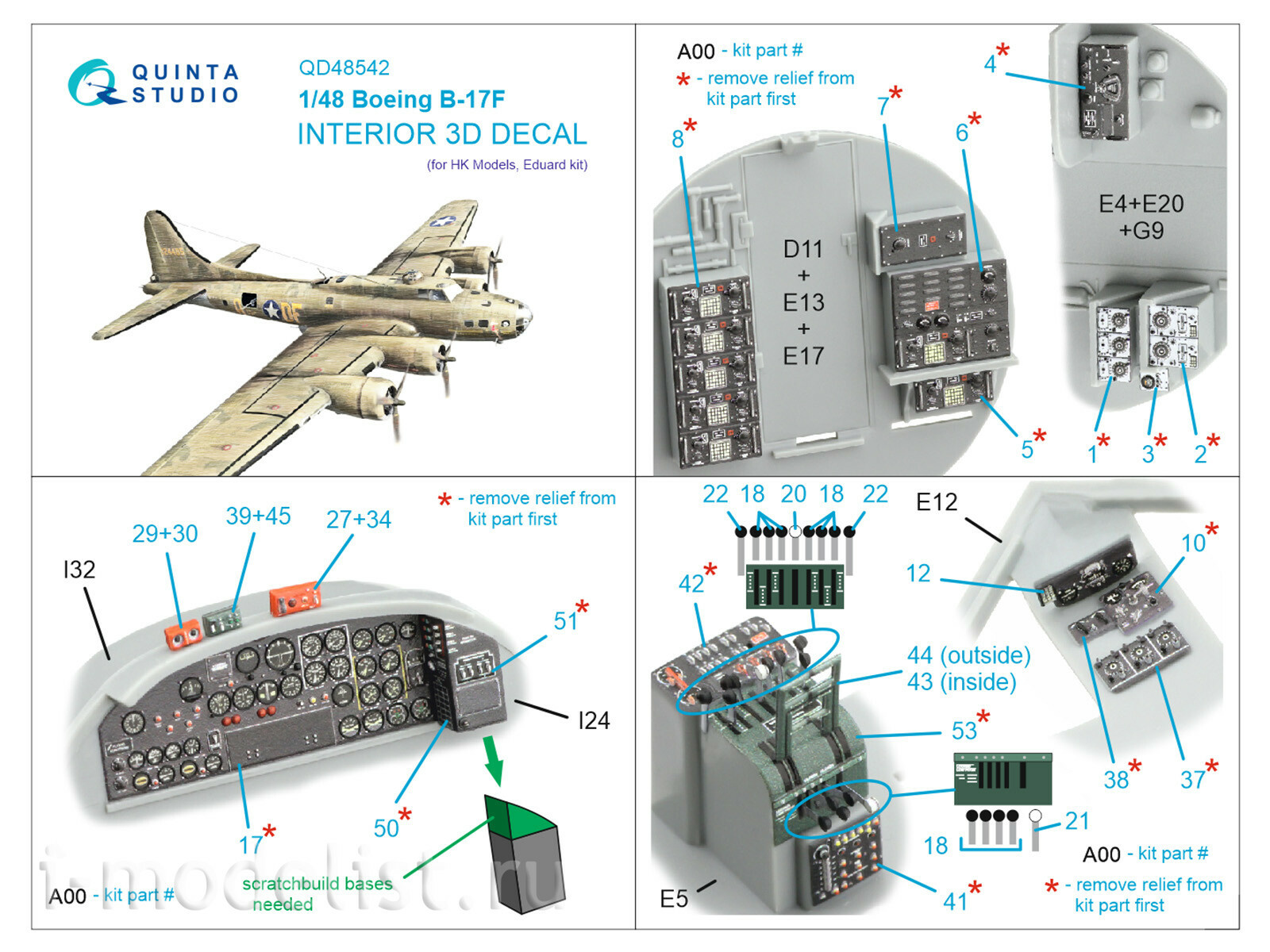 Купить QD48542 QUINTA STUDIO 1/48 3D ДЕКАЛЬ ИНТЕРЬЕРА КАБИНЫ BOEING B-17F (HK MODELS, EDUARD) (1/48)