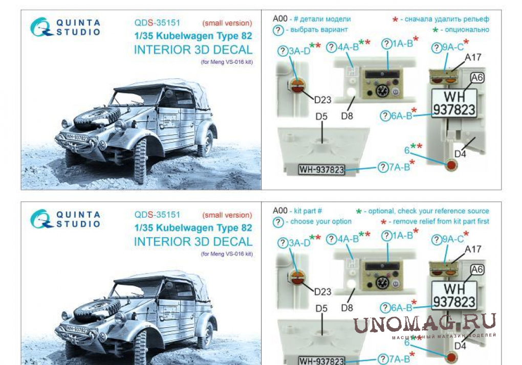 3D ДЕКАЛЬ ИНТЕРЬЕРА КАБИНЫ KUBELWAGEN TYPE 82 (MENG VS-016) (МАЛАЯ ВЕРСИЯ)