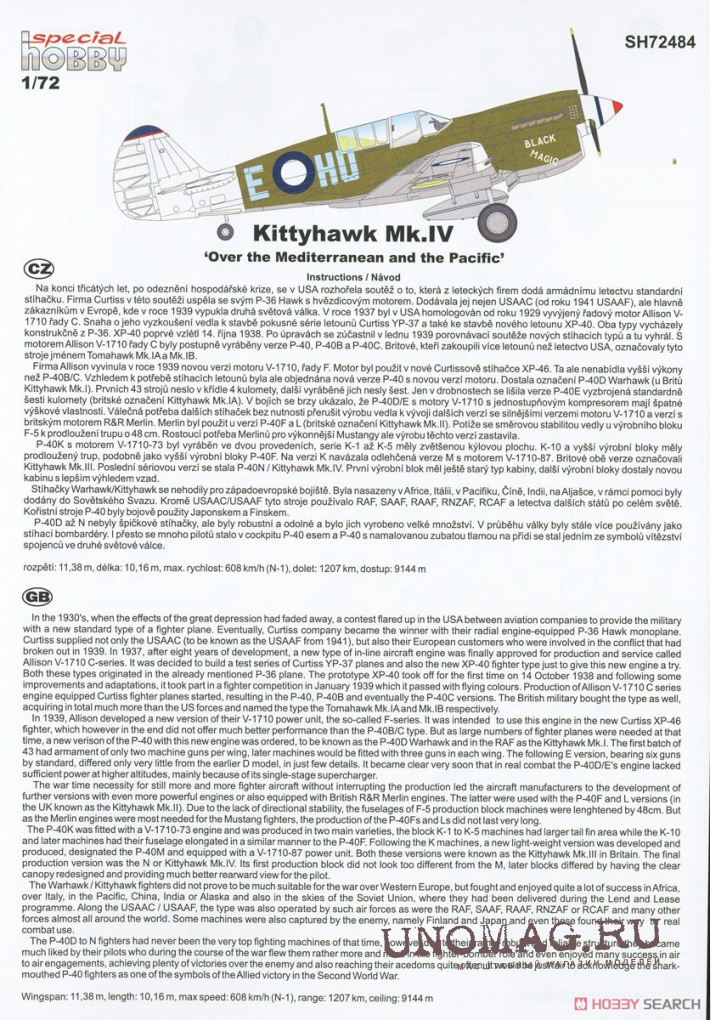 KITTYHAWK MK.IV 'OVER THE MEDITERRANEAN AND THE PACIFIC' special hobby 1/72