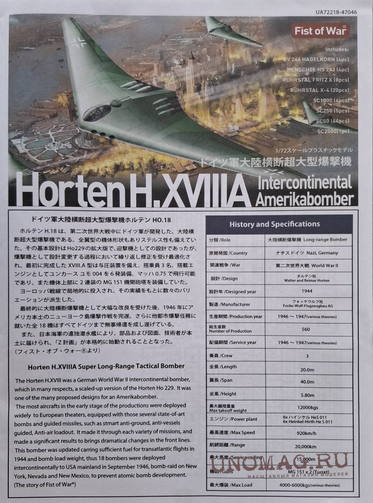 GERMAN WWII HORTEN 18A SUPER LONG-RANGE STRATEGIC BOMBER PRIME VER (1/72) продается в 1 магазинах. Выберите подходящий Вам интернет-магазин и перейдите по ссылке «В магазин».