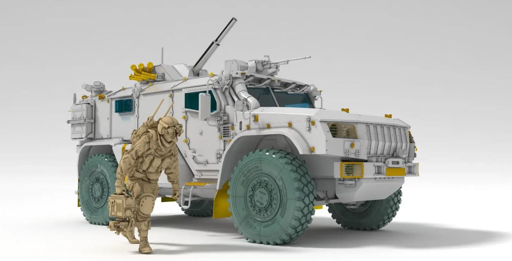 Описание 2С41 Дрок Российский самоходный 82-мм миномет, созданный на базе бронеавтомобиля Тайфун с колёсной формулой 4х4, ЦНИИ Буревестник (г. Нижний Новгород) из состава корпорации Ростех, при участии ряда других предприятий. Предназначен для уничтожения живой силы, огневых средств и легкобронированной техники, а также ослепления наблюдательных пунктов и задымления освещенной местности. Deluxe издание включает в себя: металлический ствол, металлические гранатомёты, смоляные колёса и фигурку российского бойца из смолы.