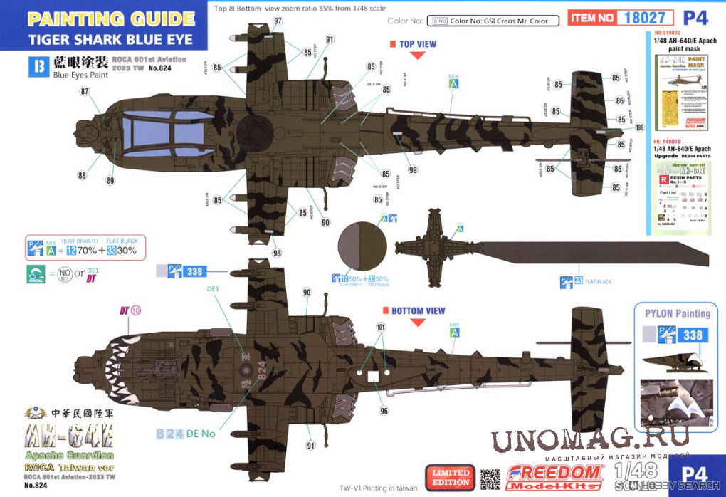 AH-64E APACHE GUARDIAN ATTACK HELICOPTER ,"TIGER SHARK 2023"ROCA TAIWAN VER.SCALE (1/48) продается в 1 магазинах. Выберите подходящий Вам интернет-магазин и перейдите по ссылке «В магазин».