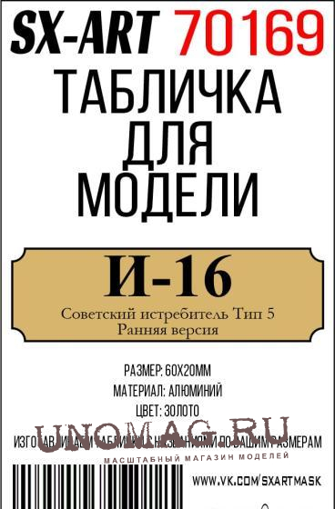 ТАБЛИЧКА ДЛЯ МОДЕЛИ И-16 СОВЕТСКИЙ ИСТРЕБИТЕЛЬ ТИП 5 РАННЯЯ ВЕРСИЯ продается в 1 магазинах. Выберите подходящий Вам интернет-магазин и перейдите по ссылке «В магазин».