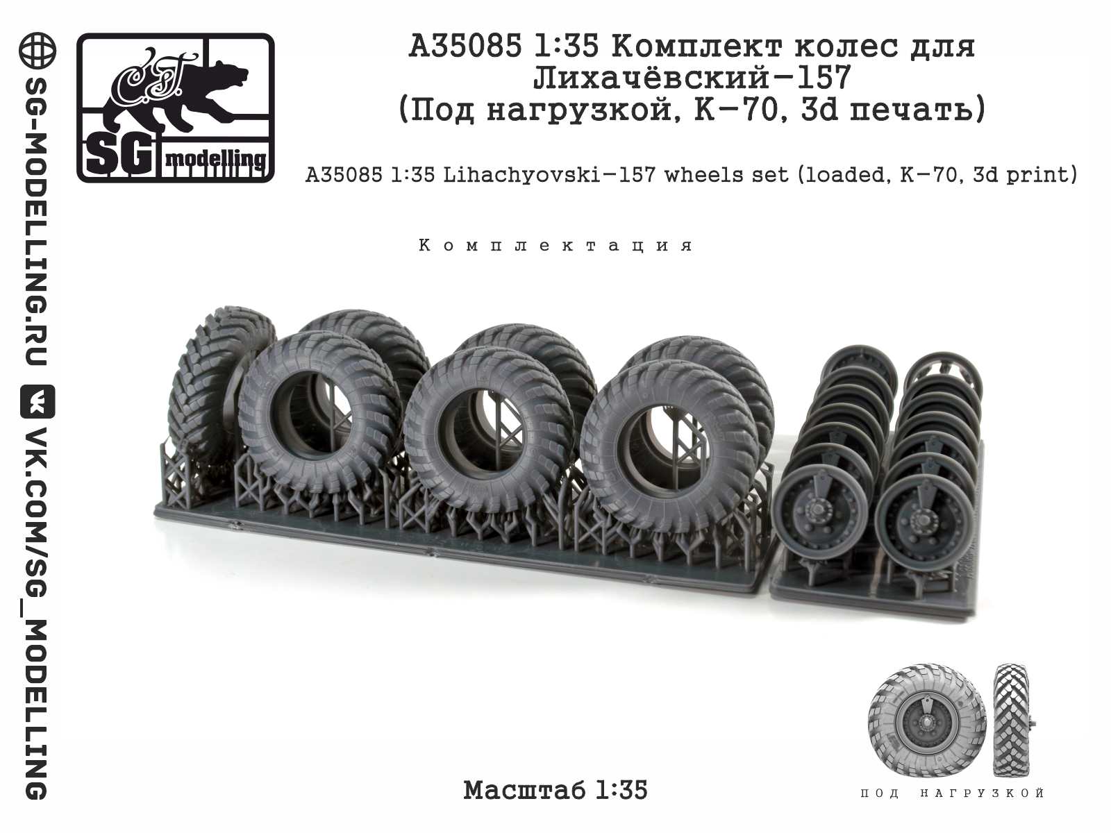 A35085 ДОПОЛНЕНИЯ ИЗ СМОЛЫ КОМПЛЕКТ КОЛЕС ДЛЯ ЛИХАЧЁВСКИЙ-157 ПОД НАГРУЗКОЙ, К-70, 3D (1/35) продается в 1 магазинах. Выберите подходящий Вам интернет-магазин и перейдите по ссылке «В магазин».