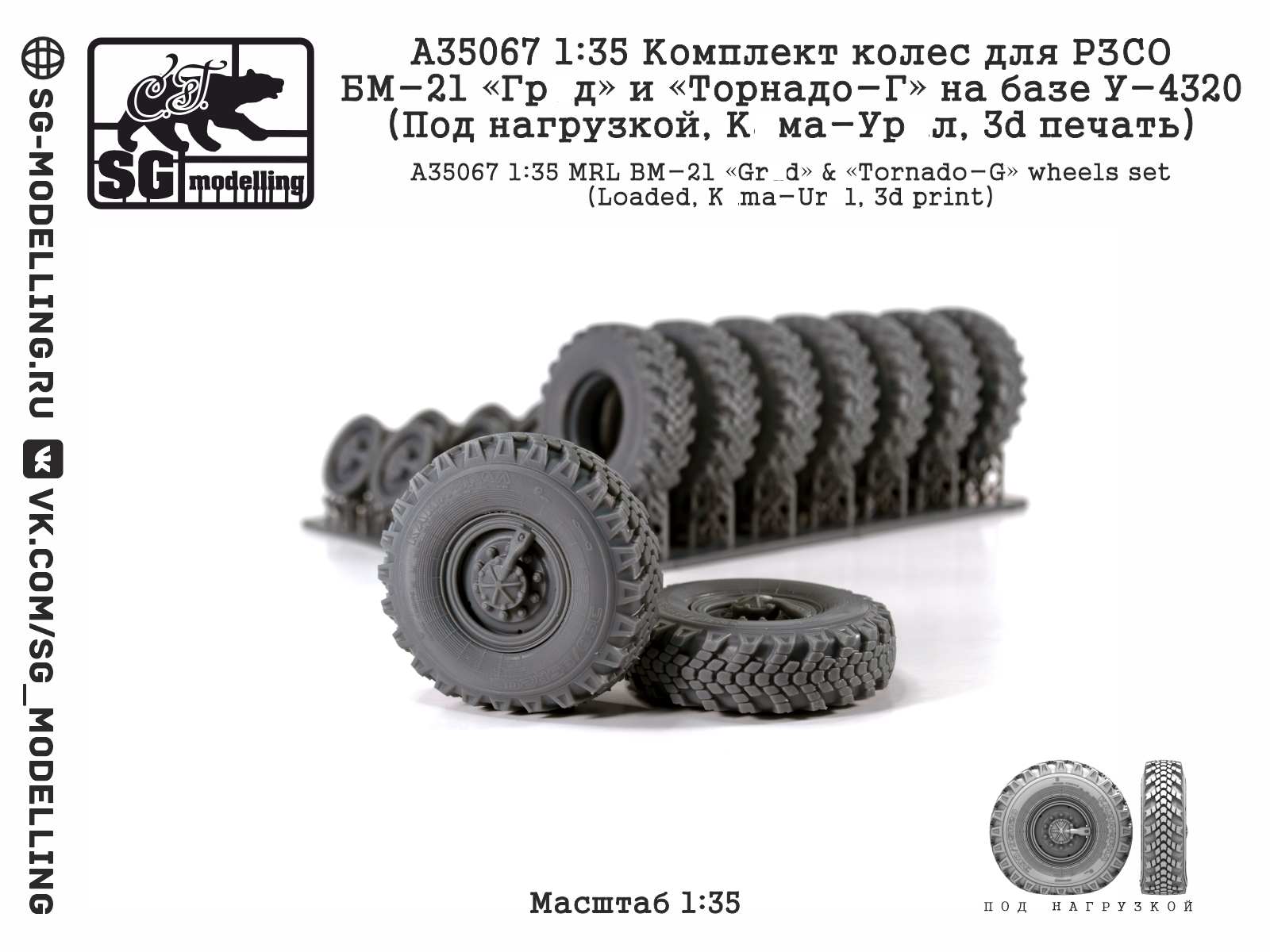 Купить A35067 ДОПОЛНЕНИЯ ИЗ СМОЛЫ КОМПЛЕКТ КОЛЕС РЗСО БМ-21 И «ТОРНАДО-Г» НА У-4320ПОД НАГР, К@М@ (1/35)