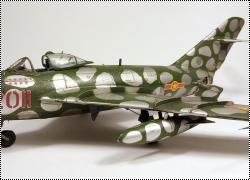 Миг-17 советский реактивный истребитель, разработанный в ОКБ Микояна и Гуревича в конце 1940-х годов. Первым из серийных истребителей допускал достижение скорости звука, но для боевых полётов считался околозвуковым. Предназначался для замены МиГ-15, являясь дальнейшим его развитием. Путем увеличения стреловидности крыла, удлинения фюзеляжа и прочих улучшений аэродинамики, удалось увеличить скоростные характеристики. При дальнейшей модернизации самолёта был установлен двигатель ВК-1Ф, оснащенный форсажной камерой. Имея возможность выходить на форсажный режим, можно ненадолго увеличить максимальную тягу двигателя на 25%. Это позволило повысить высотность самолёта и существенно расширить возможности вертикального манёвра в воздушном бою. С новым двигателем самолёт получил название Миг-17Ф. Вооружение являлось стандартным для советского истребителя того периода: одна 37-мм пушка Н-37Д (конструкции Нудельмана) и две 23-мм пушки НР-23 (конструкции Нудельмана-Рихтера). Миг-17Ф был принят на вооружение в 1951 году