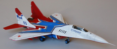 Модель от компании-производителя ICM. Самолет пилотажной группы Стрижи. Модификация МиГ-29 9-13 выпускалась в 1986-1991 годах. Эти самолеты имели оборудование РЭП и увеличенный запас топлива. В настоящее время они составляют основу истребительной авиации ВВС стран СНГ, в том числе России и Украины. (72142-ICM)