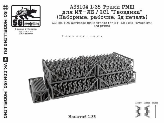 Описание Траки РМШ для МТ-ЛБ / 2С1 "Гвоздика" (Наборные, рабочие, 3д печать) (1:35)